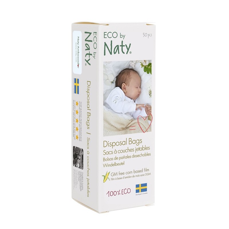 Ekologické sáčky na použité plenky Naty jsou vyrobené ze 100% přírodních materiálů za použití enviromentálně šetrných zdrojů, snadno se tak rozloží a jsou plně kompostovatelné.