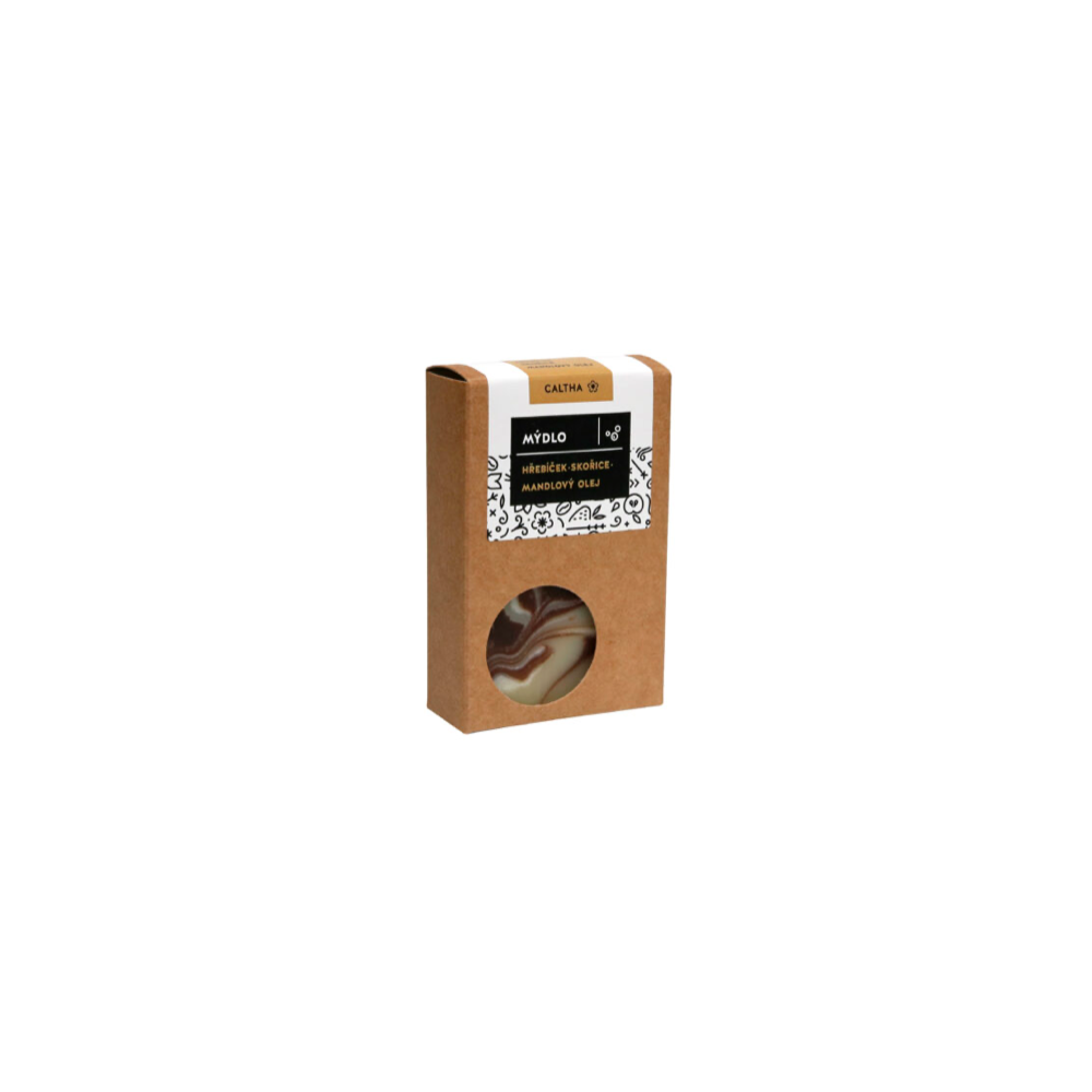 Kokosový tuk, olivový olej, mandlový olej, esenciální oleje Skořice a Hřebíček, koření skořice a hřebíček, kakao, Ingredients: Sodium Cocoate, Aqua, Sodium Olivate, Prunus Amygdalus Dulcis Oil, Cinnamomum Zeylanicum Bark Oil, Eugenia Caryophyllus Bud Oil, Theobroma Cacao Seed Powder, Cinnamomum Zeylanicum Bark Powder, Eugenia Caryophyllus Flower Bud, *Cinnamal, *Benzyl Benzoate, *Eugenol, *Linalool (*přirozená součást esenciálních olejů).