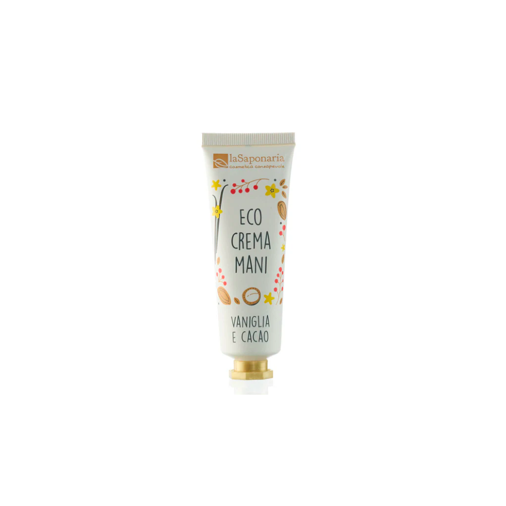 Krém na ruce s vůní vanilky a obsahu kakaového másla vaše ruce dokonale vyživí a provoní. Obsahuje také mandlový a makadamiový olej, kyselinu hyaluronovou, oves i rýži a díky tomu budou vaše ruce chráněné před mrazem.
