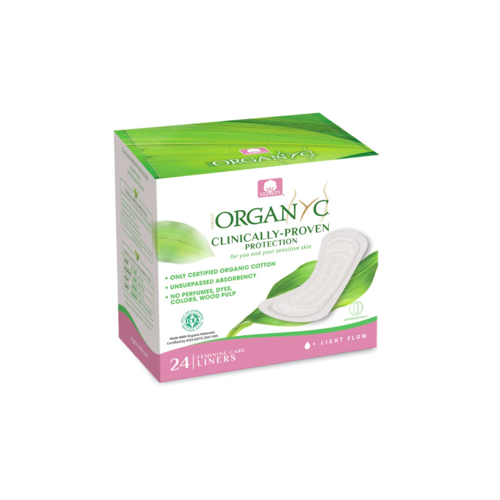 Slipové vložky Organyc jsou uvnitř i vně vyrobené ze 100% BIO bavlny bělené bez chlóru. Neskrývají se v nich žádná syntetická vlákna, žádné chemikálie ani žádná parfemace.
