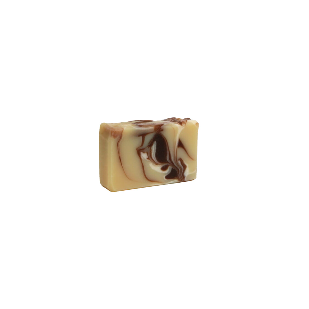 Kokosový tuk, olivový olej, mandlový olej, esenciální oleje Skořice a Hřebíček, koření skořice a hřebíček, kakao, Ingredients: Sodium Cocoate, Aqua, Sodium Olivate, Prunus Amygdalus Dulcis Oil, Cinnamomum Zeylanicum Bark Oil, Eugenia Caryophyllus Bud Oil, Theobroma Cacao Seed Powder, Cinnamomum Zeylanicum Bark Powder, Eugenia Caryophyllus Flower Bud, *Cinnamal, *Benzyl Benzoate, *Eugenol, *Linalool (*přirozená součást esenciálních olejů).