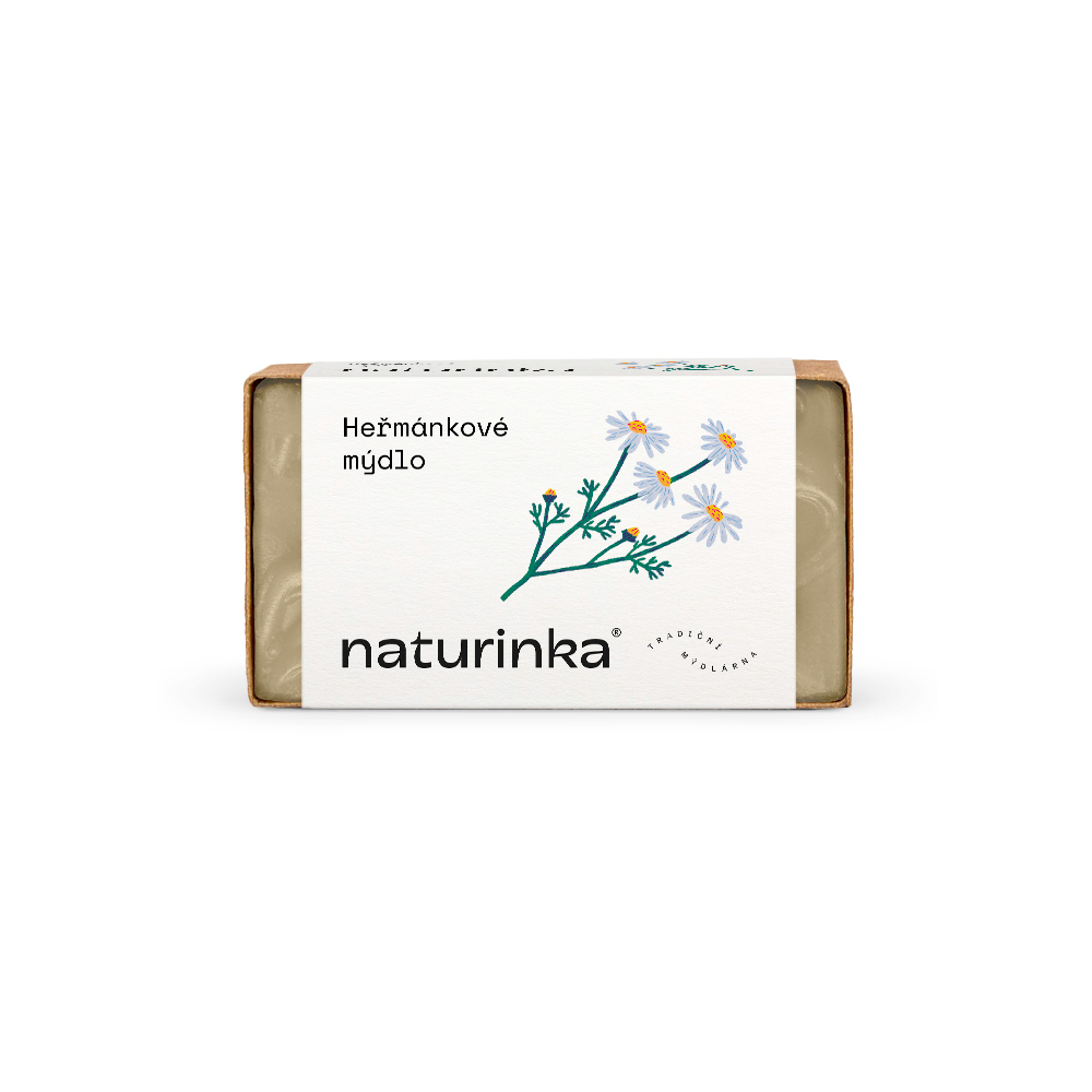 Přírodní, ručně vyrobené mýdlo s odvarem z heřmánku. Mýdlo je jemné a vhodné i pro popraskanou a suchou pokožku.