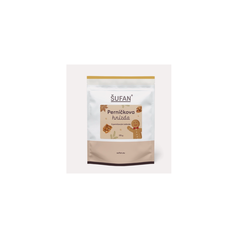 Bezlepkové ovesné vločky, pohankové vločky, mandle pražené, mandlový krém, čekankový sirup, med, para ořechy, ghí, olivový olej, pufované jáhly, kokosový cukr, perníkové koření 3 % (skořice, koriandr, nové koření, hřebíček, badyán), fazole tonka, sůl.