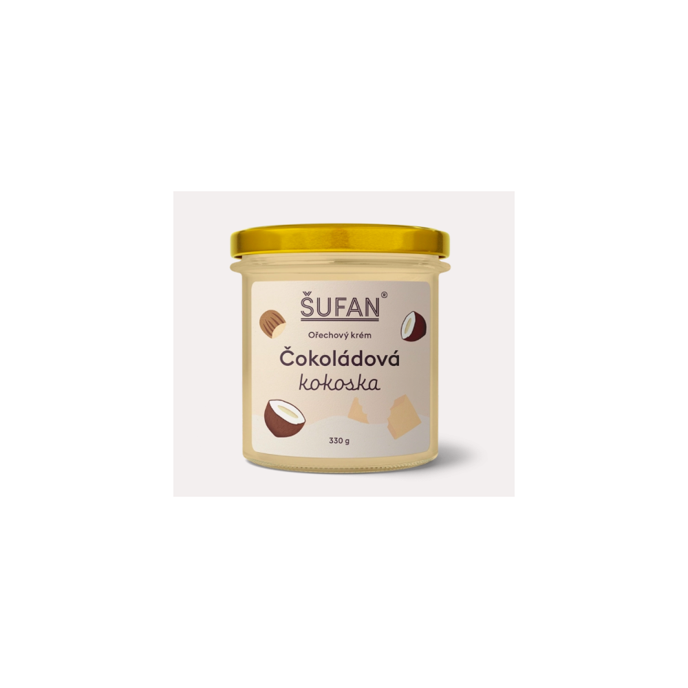 Krémové máslo z mandlí, kokosu a bílé řemeslné čokolády, kterou si Šufan sám vyrábí.